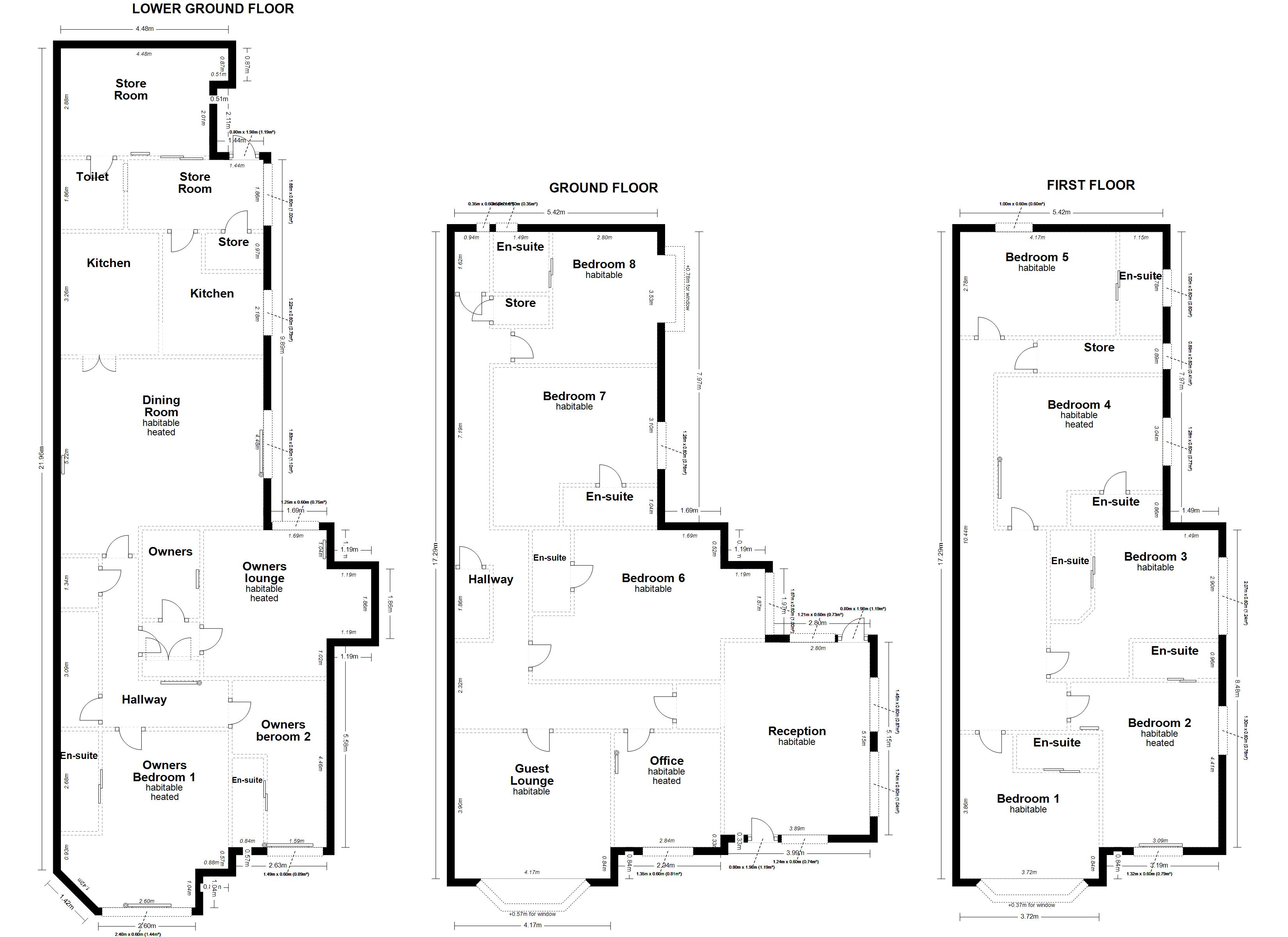 The owners’ accommodation occupies part of the lower ground floor offering 2 ensuite bedrooms together with a good-sized lounge. Adjoining the lounge is a useful small pantry/store.